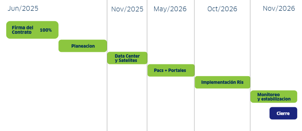 Asimismo, incluye un servicio de soporte y operación 7×24 durante 60 meses, se realizará la migración aproximada de 450 TB de información, que comprende imágenes, lecturas, usuarios, configuraciones y datos históricos de RIS y PACS.